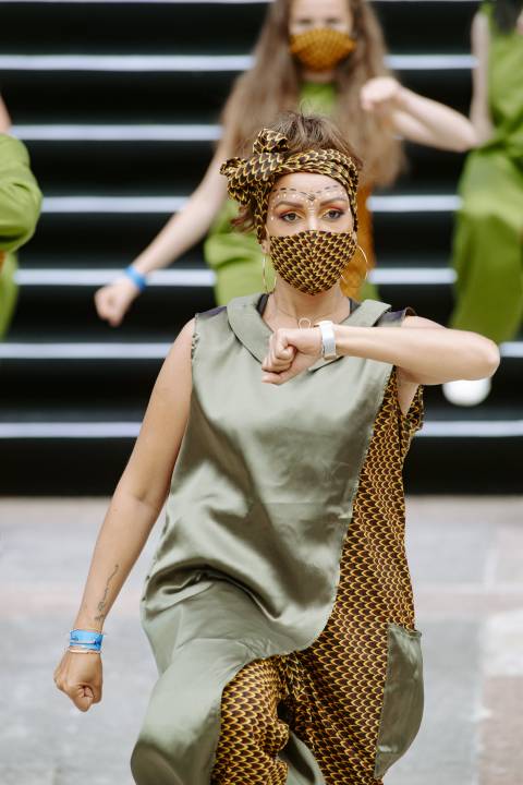 Le défilé s’inspire de la légende de la Princesse Yennenga, mère fondatrice du Royaume des Mossi au Burkina Faso. Une danse hybride, afro-urbaine, comme moyen de résistance, un chemin de Paix au rythme d’une interprétation vocale, des percussions mandingues et de sons électro/hip-hop.